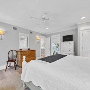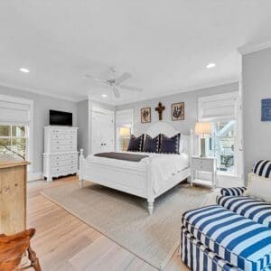 The third floor offers a private queen bedroom with its own balcony, reached by a spiral staircase. With two beach cruisers, premium linens, and up to eight wristbands for private beach access, Amazing Grace is the ideal Seaside escape for families and groups seeking comfort, walkability, and thoughtful design.