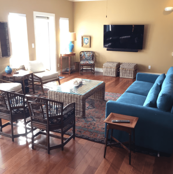 Inside, every detail is elevated. Enjoy Sony OLED TVs, a Sonos sound system, two Stearns & Foster king beds, and a king sleeper sofa from Design Within Reach. The fully appointed gourmet kitchen includes everything you need for long stays, supported by a reverse osmosis filtration system, bottled water, and coffee. Free bikes, beach chairs, umbrellas, and towels are provided.