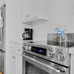 Guests are fully equipped for beach days with 11 chairs, an umbrella, 11 towels, a backpack cooler, and Spikeball. Seasonal beach shuttle access makes getting to the sand even easier.