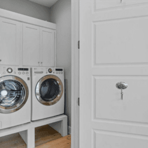 The main level features an open-concept layout with floor-to-ceiling windows that fill the kitchen, dining, and living areas with natural light. The chef’s kitchen offers generous counter space and flows into a dining area with seating for eight. This level also includes a king suite with an ensuite bath and walk-in closet, a half bath, and a full laundry room. Step onto the back porch to access the outdoor dining and grill area nestled beside the nature trail.