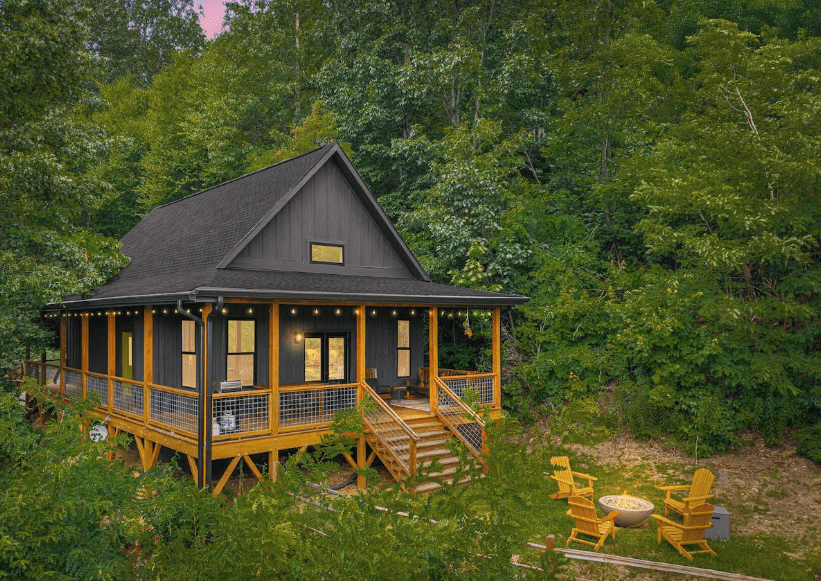 Long Views Retreat is a private, modern cabin perched above the Maggie Valley Country Club, offering sweeping mountain views and three spacious king suites perfect for families and groups. With vaulted ceilings, a cozy fireplace, a loft with twin beds, and strong Wi-Fi for remote work, the home blends rustic charm with thoughtful comfort. Step onto the wraparound deck for sunrise coffee, evening cocktails, and unforgettable scenery.