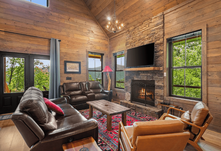 Located close to the Blue Ridge Parkway, Smoky Mountain adventures, ski slopes, waterfalls, and local dining, this cabin puts the best of Maggie Valley within easy reach. Guests enjoy a peaceful setting, paved access, a flat driveway, a washer and dryer, Smart TVs, and a fully equipped kitchen. Whether you’re hiking, skiing, or simply relaxing, Long Views Retreat is designed for memorable mountain getaways.
