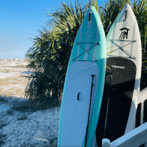 Oasis East also comes fully stocked with beach service, two paddleboards, a fishing kayak, bikes, coolers, boogie boards, sand toys, beach towels, a gas grill, and even an extra fridge for drinks. All of this sits minutes from Grayton Beach, Seaside, and Blue Mountain’s restaurants, shops, and coastal charm.