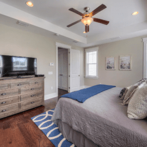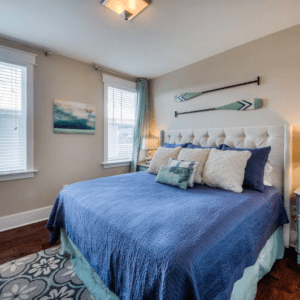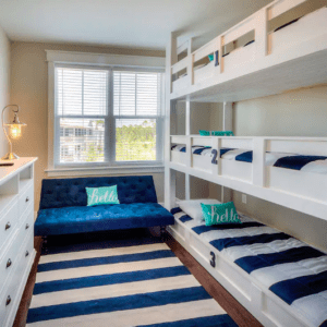 Upstairs, the well-appointed bedrooms offer comfort and privacy for families and groups. With luxury linens, tasteful décor, and plenty of space, each room provides a peaceful retreat after a day on the beach.