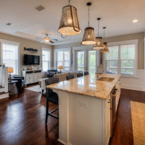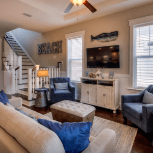 Guests enjoy full access to NatureWalk’s incredible amenities, including two resort-style pools (one heated), a shaded kiddie pool, hot tub, fire pits, pickleball, basketball, volleyball courts, playground, and scenic trails. Four complimentary bikes make it easy to explore the neighborhood, ride to the nearby Publix at WaterColor Crossings, or head straight to the white-sand beaches that 30A is famous for.