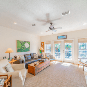 Three Little Birds sits in a quiet corner of Seagrove where the beach feels close but the setting stays peaceful. This 3 bedroom, 3.5 bathroom home overlooks coastal dunes, a small lake, and the emerald water that makes 30A famous. It is tucked inside a private community that borders Deer Lake State Park, just over one third of a mile from one of the least crowded beach accesses in the area.
