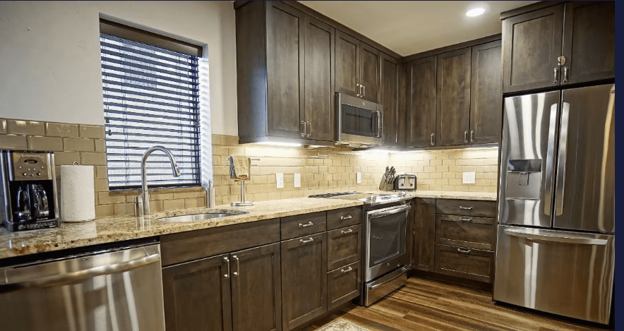 All LiveWell Membership properties include full kitchens with modern appliances, washer/dryer, WiFi, air conditioning, and on-site parking.